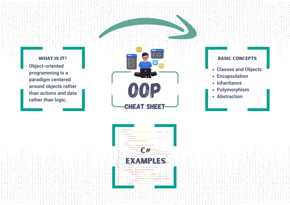 Dive into the world of Object-Oriented Programming with our comprehensive C# OOP Cheat Sheet! Whether you're a beginner eager to start coding, a student looking to reinforce your knowledge, or a seasoned programmer seeking a quick reference guide, this cheat sheet is your go-to resource for mastering OOP concepts in C#.